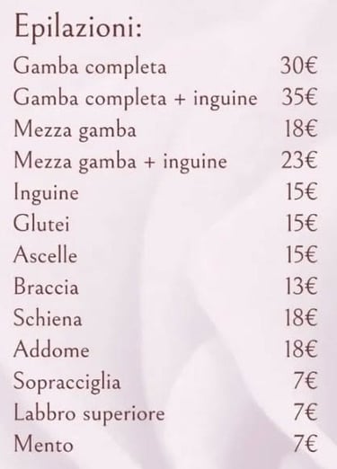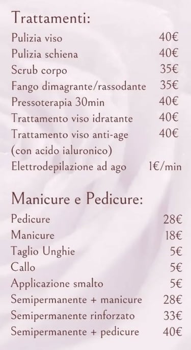 Per continuare a garantirti la qualità, la professionalità e i prodotti che avete sempre trovato nel mio centro, dal 02/02/2026 alcuni trattamenti subiranno un piccolo adeguamento di prezzo di 2/3€.